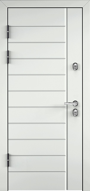 Эта белоснежная входная дверь с линиями №30 станет стильным и надежным элементом для любого интерьера. Благодаря отделке из панелей МДФ с ПВХ-покрытием, дверь выглядит элегантно и обладает высокой устойчивостью к внешним повреждениям. Внешний вид дверного полотна дополнен утонченными линиями, что придает ей современный, лаконичный вид. Прочный каркас из профильных труб 50х25 мм и лист металла толщиной 2 мм обеспечивают отличную защиту и долгий срок службы. Два контура резинового уплотнителя эффективно защищают от шума и холода, создавая комфорт в помещении. Замки Просам и Мосрентген с тремя ригелями гарантируют надежную безопасность. Дополнительно можно заказать зеркала, стеклопакеты и кованые элементы, что делает дверь универсальной для разных дизайнерских решений. Квартирная дверь входная белоснежного цвета с линиями №30 от производителя: быстрое изготовление и монтаж в Михнево, индивидуальные размеры, широкий выбор материалов и фурнитуры, официальная гарантия до 10 лет.