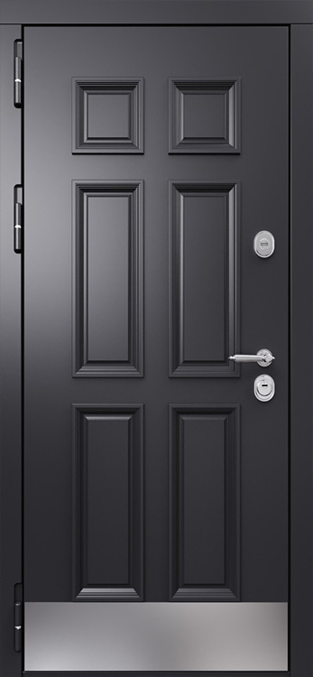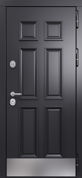 Входная дверь с МДФ №566 создана для тех, кто ценит прочность металла и уютный внешний вид в одном решении. Она одинаково хорошо вписывается в частный дом, квартиру или офис, подчеркивая солидность пространства и обеспечивая надежную защиту. Каркас и полотно собраны из профильных труб, усиленных ребрами жесткости, а стальной лист толщиной 2 мм гарантирует устойчивость к взлому и длительный срок службы. С обеих сторон дверь облицована МДФ панелями с ПВХ-покрытием, что делает поверхность более устойчивой к истиранию и мелким повреждениям, сохраняя привлекательность даже при интенсивной эксплуатации. Панели легко очищаются и не выгорают на солнце, благодаря чему дверь подходит и для уличной установки. Два контура уплотнения надежно защищают от сквозняков и посторонних запахов, а при необходимости можно дополнительно усилить конструкцию тепло- и шумоизоляцией. Модель №566 сочетает в себе сдержанный дизайн и функциональность, делая ее практичным выбором для самых разных помещений. Входная дверь с МДФ №566 от производителя: быстрое изготовление и монтаж в Михнево, индивидуальные размеры, широкий выбор материалов и фурнитуры, официальная гарантия до 10 лет.