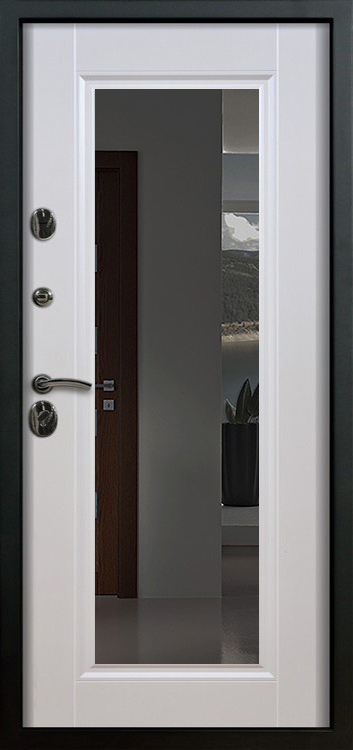 Металлическая входная дверь с зеркалом внутри №1 создана как универсальное решение для дома, квартиры или офиса, где важны и безопасность, и комфорт. Каркас выполнен из прочной профильной трубы с металлическим листом толщиной 2 мм и рёбрами жёсткости, что обеспечивает устойчивость к механическим воздействиям и долгий срок службы. Снаружи дверь покрыта порошковой окраской, стойкой к атмосферным влияниям и царапинам, а изнутри отделана МДФ с ПВХ-покрытием, которое сохраняет свежий вид даже при интенсивной эксплуатации. Встроенное зеркало превращает полотно в практичный элемент интерьера: оно визуально расширяет пространство прихожей и избавляет от лишних предметов мебели. Два контура уплотнителей защищают от пыли и сквозняков, а блокираторы усиливают общую надёжность конструкции. Модель не оснащена терморазрывом, зато отличается продуманным балансом практичности и доступной цены, оставаясь удобным вариантом для повседневного использования. Металлическая входная дверь с зеркалом внутри №1 от производителя: быстрое изготовление и монтаж в Михнево, индивидуальные размеры, широкий выбор материалов и фурнитуры, официальная гарантия до 10 лет.