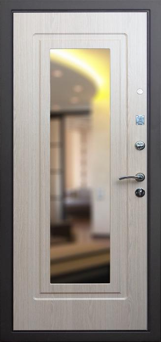 Эта модель создана для тех, кто ценит не только прочность, но и практичность в повседневном использовании. Стальной каркас из профильной трубы и лист металла толщиной 2 мм с рёбрами жёсткости формируют надёжную основу, способную выдерживать серьёзные нагрузки. Снаружи дверь защищена порошковым покрытием, которое устойчиво к влаге, солнцу и механическим повреждениям, а изнутри отделана МДФ-накладкой, придающей интерьеру уют и аккуратность. В центре конструкции внимание привлекает зеркало — удобная деталь, которая избавляет от необходимости в дополнительном настенном аксессуаре и одновременно делает пространство визуально просторнее. Именно здесь название модели — металлическая дверь с зеркалом в дом №2 — обретает своё значение, сочетая функциональность с эстетикой. Для повышения безопасности предусмотрены два замка российского производства с независимыми системами запирания, а также блокираторы. Два контура уплотнителя защищают от сквозняков и пыли, а возможность выбрать направление открывания делает установку универсальной. Металлическая дверь с зеркалом в дом №2 от производителя: быстрое изготовление и монтаж в Михнево, индивидуальные размеры, широкий выбор материалов и фурнитуры, официальная гарантия до 10 лет.