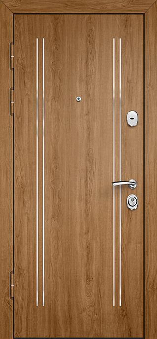Входная дверь для частного дома №40 создана для тех, кто ценит надёжность и аккуратный внешний вид. Каркас из профильных труб с листом стали толщиной 2 мм и системой рёбер жёсткости обеспечивает прочность и устойчивость ко взлому. В конструкции реализован терморазрыв в коробке и полотне, благодаря чему дверь не промерзает и сохраняет тепло даже в холодное время года. С обеих сторон полотно отделано панелями МДФ ПВХ — материалом, который хорошо переносит перепады температуры и влажность, устойчив к царапинам и надолго сохраняет первоначальный вид. Два контура уплотнителей защищают от сквозняков и посторонних запахов, создавая комфорт внутри помещения. Такая модель универсальна: она органично впишется в частный дом, квартиру или офис, оставаясь практичным и долговечным решением. Входная дверь для частного дома №40 от производителя: быстрое изготовление и монтаж в Михнево, индивидуальные размеры, широкий выбор материалов и фурнитуры, официальная гарантия до 10 лет.