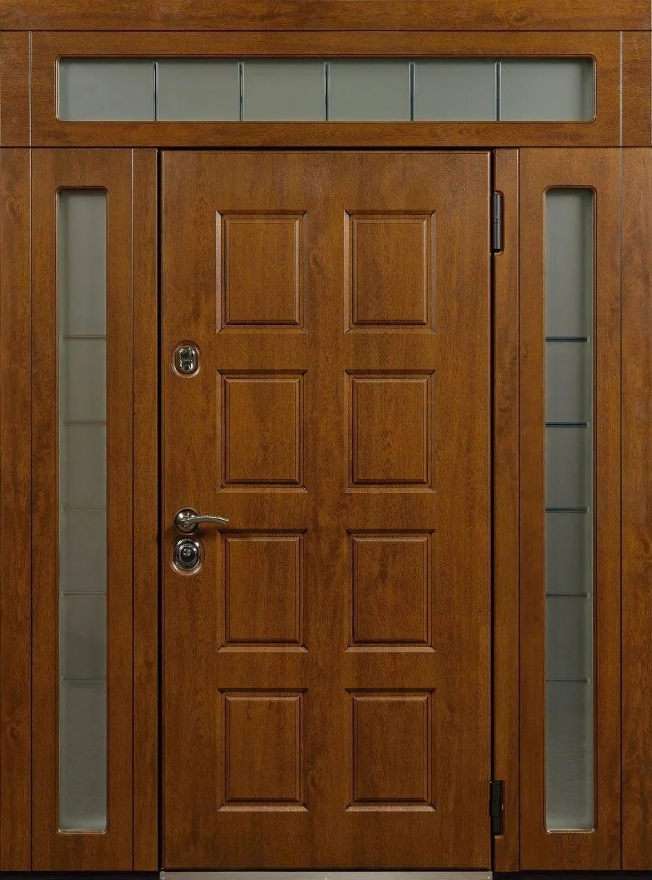 Элитная парадная дверь с фрамугой №4 станет не только защитой вашего дома, но и его визитной карточкой. Ее внешний вид, сочетающий плиту МДФ с ПВХ-покрытием, выглядит современно и гармонично, сохраняя стойкость к внешним воздействиям, таким как царапины и вмятины. Конструкция, выполненная из профильной трубы 50х25 мм и металлического листа толщиной 2 мм, гарантирует долговечность и прочность. Благодаря фрамуге дверь пропускает свет, добавляя пространству легкости. Встроенные замки с ригелями обеспечивают надежную защиту. Возможность выбора направления открывания и комбинирования отделок делает эту модель универсальной для любых интерьеров. Также можно дополнить дверное полотно зеркалом или стеклопакетом, а если требуется, заменить замки на более высокозащищенные модели. Элитная парадная дверь с фрамугой №4 от производителя: быстрое изготовление и монтаж в Михнево, индивидуальные размеры, широкий выбор материалов и фурнитуры, официальная гарантия до 10 лет.