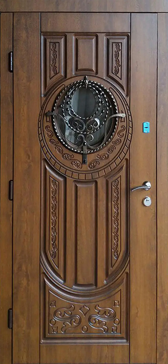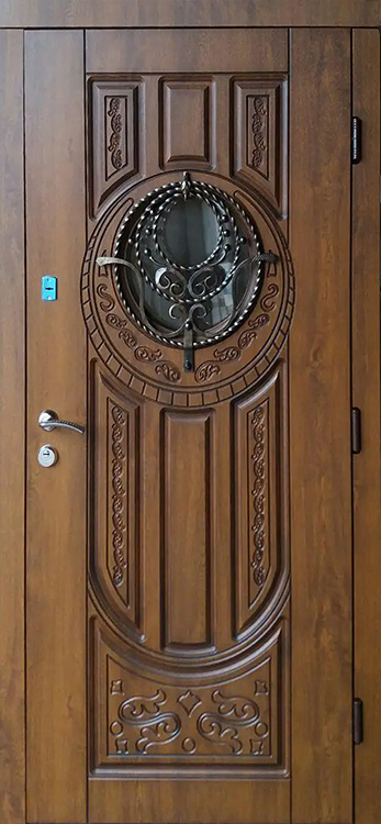 Владельцы коттеджей ценят входные конструкции, которые одинаково подчеркивают статус и защищают от любых внешних факторов. Здесь удачно сочетаются прочный металл и массив дуба, придающий поверхности солидность и благородство. Натуральное дерево сохраняет цвет и текстуру долгие годы, устойчиво к механическим повреждениям и перепадам температуры. Внутри конструкции скрыт стальной каркас толщиной 1,5 мм с ребрами жесткости и противосъёмными блокираторами, что делает полотно практически неприступным. Особое преимущество — терморазрыв коробки и полотна, благодаря которому дверь не промерзает даже в сильные морозы и сохраняет тепло в доме. Именно на этом контрасте надежности и эстетики выделяется железная дверь со стеклом и ковкой №21, украшенная изящными декоративными элементами. Три контура магнитного уплотнения обеспечивают герметичность, а система замков Kale Kilit повышает уровень безопасности, при этом конструкция допускает установку современных умных решений и дополнительных декоративных опций. Железная дверь со стеклом и ковкой №21 от производителя: быстрое изготовление и монтаж в Михнево, индивидуальные размеры, широкий выбор материалов и фурнитуры, официальная гарантия до 10 лет.