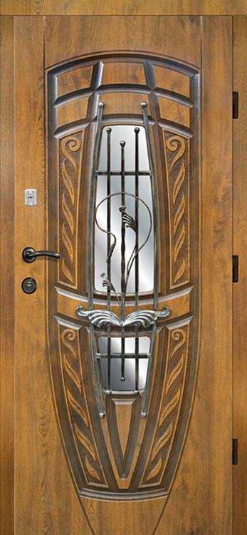 Для загородного дома важна дверь, которая умеет быть не только красивой, но и практичной. Натуральное дерево в отделке делает её внешне солидной и теплой, а декоративная ковка добавляет изящества и превращает вход в стильный акцент фасада. В основе конструкции лежит прочный стальной каркас с листом металла толщиной 1,5 мм и ребрами жесткости, а противосъёмные блокираторы обеспечивают дополнительный уровень защиты. Особого внимания заслуживает терморазрыв, выполненный в коробке и полотне: он надежно изолирует дом от холода, предотвращает промерзание и сохраняет уют даже при сильных морозах. Входная дверь уличная с ковкой №22 также оснащена тройным контуром магнитного уплотнения, что усиливает герметичность и помогает снизить шум. Конструкция позволяет выбирать размеры и дополнения по вкусу, включая стеклопакет, зеркало или видеодомофон, создавая гармонию между безопасностью, удобством и выразительным дизайном. Входная дверь уличная с ковкой №22 от производителя: быстрое изготовление и монтаж в Михнево, индивидуальные размеры, широкий выбор материалов и фурнитуры, официальная гарантия до 10 лет.