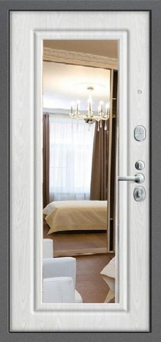 Белый цвет придаёт этой модели лёгкость и универсальность, а зеркало на внутренней стороне делает её особенно удобной для квартир и офисов, где важно сочетать практичность и эстетику. Дверь входная металлическая белая с зеркалом №51 изготовлена на основе прочного стального каркаса с листом металла толщиной 2 мм и усилена рёбрами жёсткости, что обеспечивает надёжность и долговечность. Плиты МДФ во внутренней и внешней отделке устойчивы к повреждениям и сохраняют аккуратный вид даже при интенсивном использовании. Два контура уплотнения помогают удерживать тепло и блокировать сквозняки, а пара замков — сувальдный Просам и цилиндровый Мосрентген — обеспечивают высокий уровень защиты. Зеркальная вставка экономит пространство и визуально расширяет коридор, делая дверь не только защитной, но и функциональной частью интерьера. Дверь входная металлическая белая с зеркалом №51 от производителя: быстрое изготовление и монтаж в Михнево, индивидуальные размеры, широкий выбор материалов и фурнитуры, официальная гарантия до 10 лет.