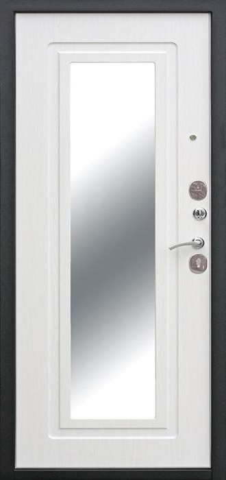 Железная дверь входная в квартиру с зеркалом №68 сочетает в себе надежность металла и практичность продуманного дизайна. Снаружи она покрыта молотковым напылением, известным своей устойчивостью к сколам и царапинам, а также способностью долго сохранять аккуратный внешний вид даже при активной эксплуатации. Внутренняя сторона оформлена накладкой из МДФ, что делает её гармоничным элементом интерьера и добавляет уюта. Встроенное зеркало не только удобно в повседневной жизни, но и визуально расширяет пространство прихожей. Основа конструкции выполнена из профильных труб с листом стали толщиной 2 мм, что гарантирует прочность и долговечность. Два контура уплотнения защищают от сквозняков и уличного шума, а наличие терморазрыва в коробке и полотне препятствует промерзанию в холодное время года. Такая дверь станет надежным и функциональным решением для квартиры, офиса или загородного дома. Железная дверь входная в квартиру с зеркалом №68 от производителя: быстрое изготовление и монтаж в Михнево, индивидуальные размеры, широкий выбор материалов и фурнитуры, официальная гарантия до 10 лет.