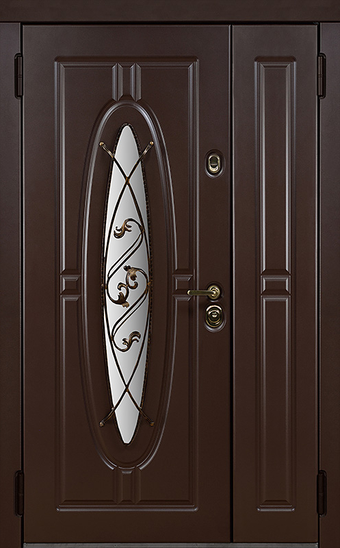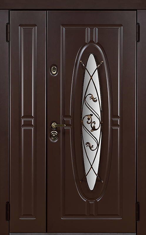 Двойная уличная дверь с овальным стеклом и художественной ковкой №14 — это уникальное сочетание функциональности и эстетики. Панели МДФ с ПВХ-покрытием, используемые как для внешней, так и для внутренней отделки, обладают высокой стойкостью к внешним воздействиям, сохраняя свой внешний вид на долгие годы. Внешний декор в виде художественной ковки придаёт двери особый шарм, подчеркивая её стиль и индивидуальность. Двойная уличная дверь с овальным стеклом и художественной ковкой №14 от производителя: быстрое изготовление и монтаж в Михнево, индивидуальные размеры, широкий выбор материалов и фурнитуры, официальная гарантия до 10 лет.