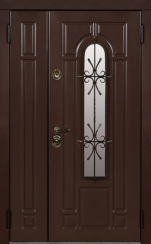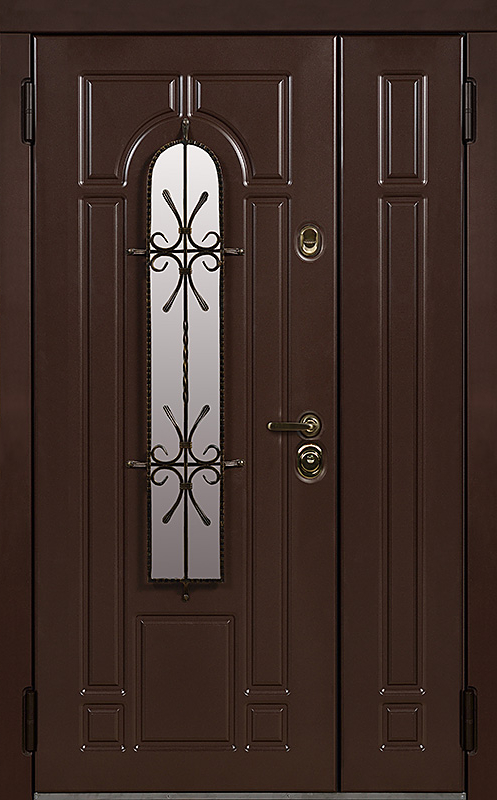 Эта металлическая двухстворчатая дверь с арочным стеклопакетом №15 представляет собой идеальный баланс между эстетикой и прочностью. Арочное стекло добавляет в её дизайн утончённость, а ковка в декоре придаёт изысканный, но в то же время крепкий и надёжный вид. Плита МДФ, используемая как для внешней, так и для внутренней отделки, не только сохраняет прекрасный внешний вид, но и устойчива к механическим повреждениям. Металлическая двухстворчатая дверь с арочным стеклопакетом №15 от производителя: быстрое изготовление и монтаж в Михнево, индивидуальные размеры, широкий выбор материалов и фурнитуры, официальная гарантия до 10 лет.