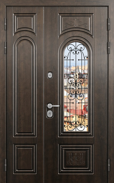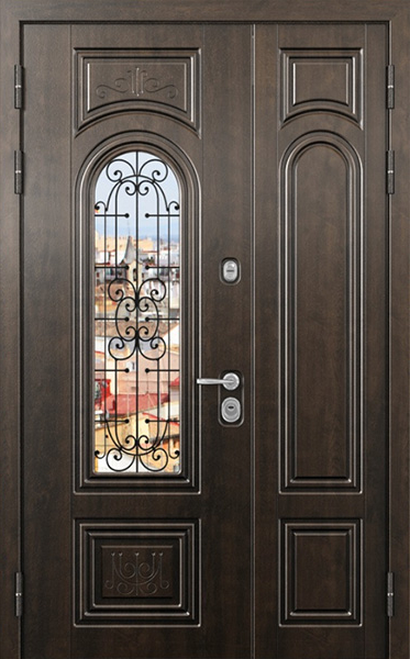 Двупольная стальная дверь со стеклопакетом и кованым узором №24 станет отличным выбором для тех, кто ценит не только безопасность, но и стиль. Внешняя и внутренняя отделка выполнены из МДФ, что придает двери элегантный и современный вид, а также обеспечивает высокую устойчивость к механическим повреждениям и износу. Стеклопакет и кованые элементы добавляют изысканности и уникальности, при этом сохраняя прочность конструкции. Двупольная стальная дверь со стеклопакетом и кованым узором №24 от производителя: быстрое изготовление и монтаж в Михнево, индивидуальные размеры, широкий выбор материалов и фурнитуры, официальная гарантия до 10 лет.
