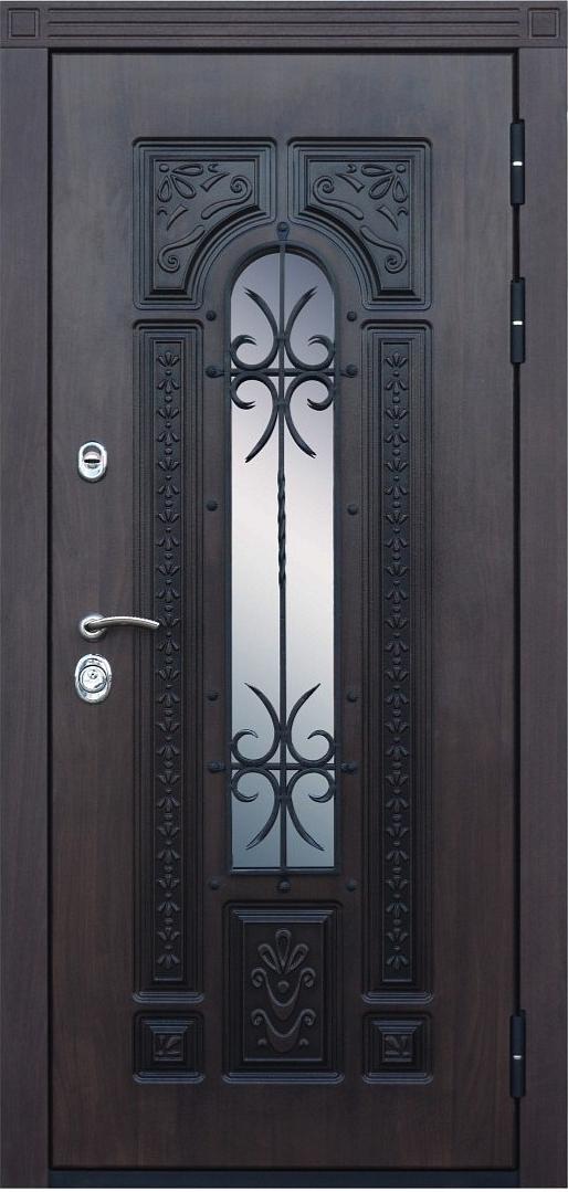Дверь с надежной фурнитурой и коваными элементами на стекле №18
