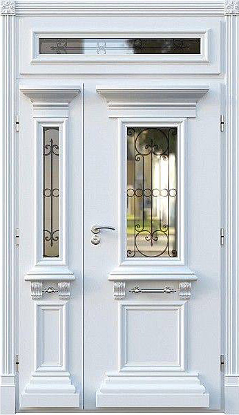 Входная металлическая дверь для частного дома со стеклом и ковкой №29