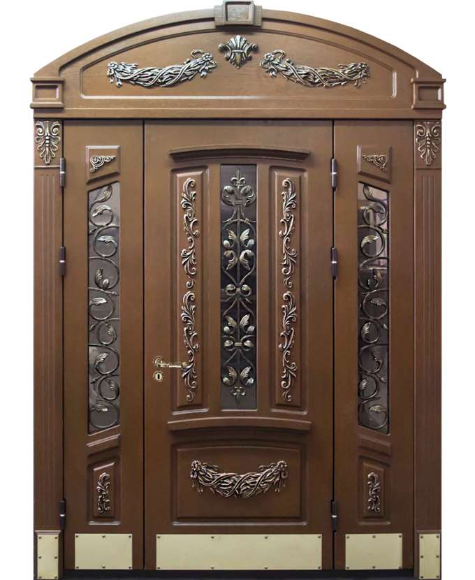 Арка придаёт входу особый характер и сразу выделяет дом среди соседних построек. Арочная входная дверь стеклопакет для загородного дома сочетает в себе статусность массивного дуба и современную практичность стеклопакета, который наполняет прихожую естественным светом и визуально облегчает массивное полотно. Стальной каркас с листом металла толщиной 2 мм и ребрами жёсткости обеспечивает надёжность, а два контура уплотнения защищают от сквозняков. Терморазрыв в коробке и полотне предотвращает промерзание, что особенно актуально для эксплуатации в загородных коттеджах. Натуральный дуб в отделке не только долговечен, но и устойчив к повреждениям, сохраняя презентабельный вид долгие годы. Такая дверь подчёркивает архитектурный стиль дома и позволяет совместить изысканность формы с практичностью современных технологий. Арочная входная дверь стеклопакет для загородного дома от производителя: быстрое изготовление и монтаж в Михнево, индивидуальные размеры, широкий выбор материалов и фурнитуры, официальная гарантия до 10 лет.
