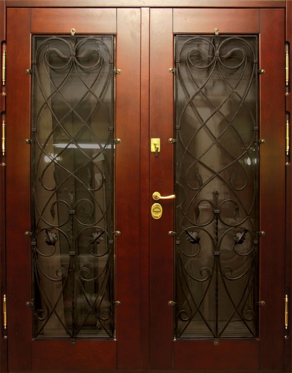 Эксклюзивная высокая входная дверь с железным отбойником №36