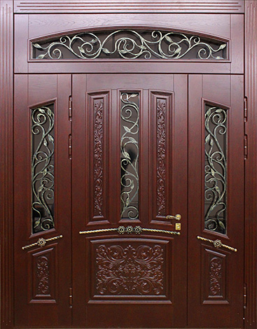 Эта модель создана для тех, кто ценит солидность и внушительный внешний вид парадного входа. Натуральный массив дуба в отделке придаёт дверному полотну статусный характер, а стеклянные вставки позволяют добавить света и лёгкости фасаду дома. При этом основа конструкции выполнена из прочной профильной трубы с использованием листа металла толщиной 2 мм и ребер жёсткости, что гарантирует надёжность и устойчивость к взлому. Двустворчатая входная дверь со стеклом №39 удобна для широких проёмов коттеджей и частных домов, обеспечивая не только безопасность, но и удобство при внесении крупногабаритной мебели. Итальянские замки Cisa сочетают в себе высокий класс защиты и плавность хода механизма, а наличие двух контуров уплотнения дополнительно защищает от сквозняков. Возможность комбинировать отделку, добавить зеркало, витраж или кованые элементы делает модель гибкой для индивидуального дизайна и подчеркивает её представительский статус. Двустворчатая входная дверь со стеклом №39 от производителя: быстрое изготовление и монтаж в Михнево, индивидуальные размеры, широкий выбор материалов и фурнитуры, официальная гарантия до 10 лет.