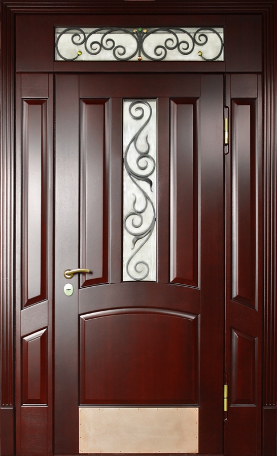 Красивая шпонированная дверь с надежной фурнитурой и ковкой "лоза" №33 идеально дополнит интерьер вашего частного дома или коттеджа. Внешняя и внутренняя отделка выполнены из натурального дерева, что придает двери элегантность и стиль. Профильная труба 50х25 мм используется для каркаса и полотна, а лист металла толщиной 2 мм и ребра жесткости из профильных труб 40х25 мм обеспечивают прочность и долговечность. Несмотря на отсутствие терморазрыва, дверь гарантирует надежную защиту и теплоизоляцию благодаря двум контурам уплотнения. Элементы ковки "лоза" придают двери особое очарование, сочетая практичность с эстетикой. Эта дверь — идеальный выбор для тех, кто ценит стиль, качество и безопасность. Красивая шпонированная дверь с надежной фурнитурой и ковкой "лоза" №33 от производителя: быстрое изготовление и монтаж в Михнево, индивидуальные размеры, широкий выбор материалов и фурнитуры, официальная гарантия до 10 лет.